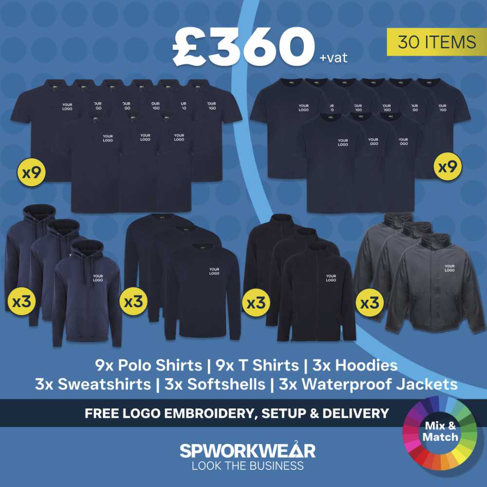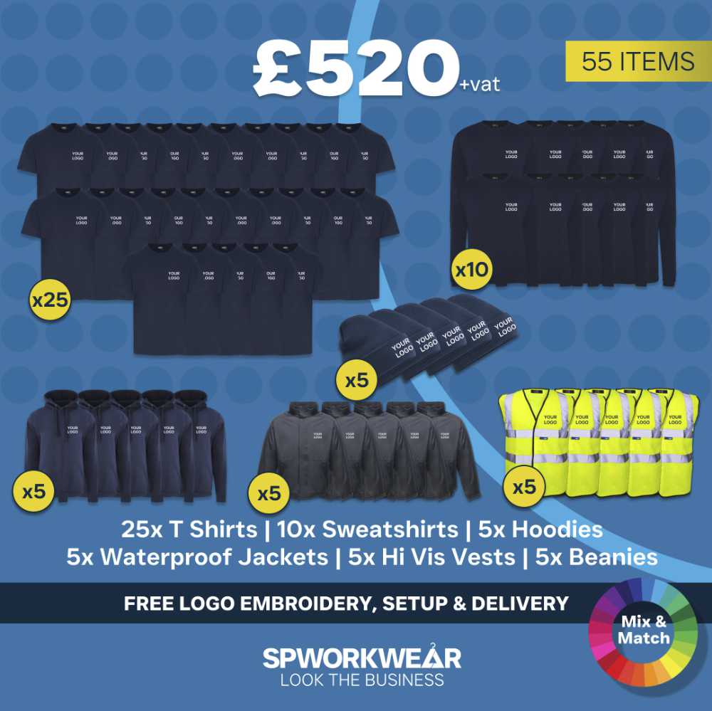 Our range of embroidered workwear packs are a great way to order branded uniform for your business without the hassle of browsing endless options. All our workwear packages have: